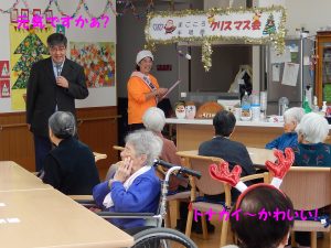 ホルン演奏会~♪ 2017.1.27 ケアハウスデイサービスイベント こんにちは~^^ 1月25日水曜日には、蔵田亜由美さんによるホルンの演奏会が ケ… 続きを読む → ハッピー・クリスマス会 in 特養棟 2016.12.23 特別養護老人ホームショートステイデイサービスイベント メリークリスマス! 12月20日、特養棟ではクリスマス会&忘年会が開かれ… 続きを読む → まごころ忘年会2016 2016.12.23 ケアハウス特別養護老人ホームショートステイデイサービスイベント 12月17日、この一年をしめくくるまごころ忘年会が開催されました。 ほぼ全職員参… 続きを読む → 雀荘まごころ 2016.12.10 デイサービス もしや?!福祉施設で賭博行為か!!?・・・ではありません。 今日、こすもすデイで… 続きを読む → お寿司 2016.10.31 ショートステイデイサービスお食事 今日は朝からみんな楽しみにソワソワ。 今日のお昼は「お寿司」なのです。ちらし寿司… 続きを読む → <︎ 1 … 8 9 10 11 >